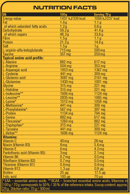 Въглехидратен комплекс, съдържащ 14% протеини за осигуряване началото на качествен възстановителен процес и мускулен растеж.