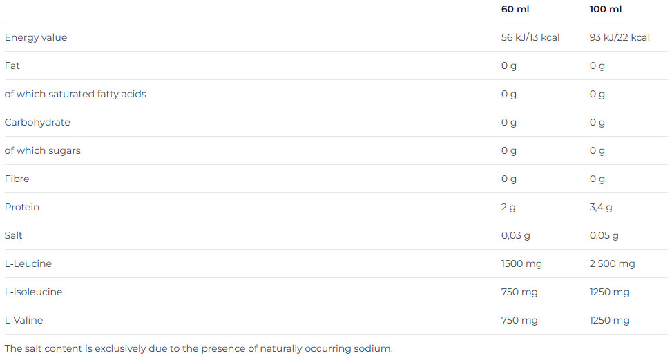 L-валин), в практична опаковка за еднократна употреба. Подходящата течна форма осигурява бързо и ефективно усвояване. Преди натоварването