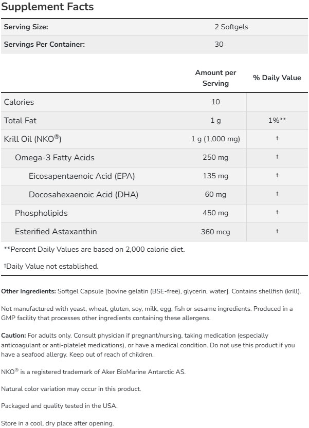 Съставки: масло от крил - източик на еснциални мастни киселини
