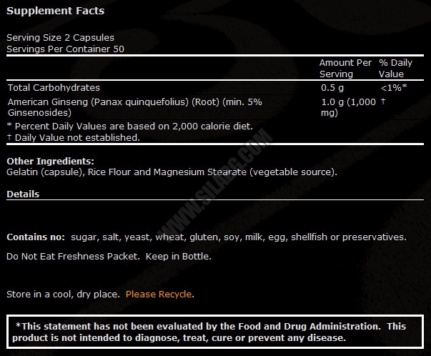 NOW American Ginseng (американски жен - шен) е добит от корените на висококачествен жен – шен, който е отгледан в Уисконсин (САЩ). Растенията са на възраст от 4 до 5 години и са с особено високо съдържание на женшенозиди ( минимум 5%), които са активните съставки на жен – шена.