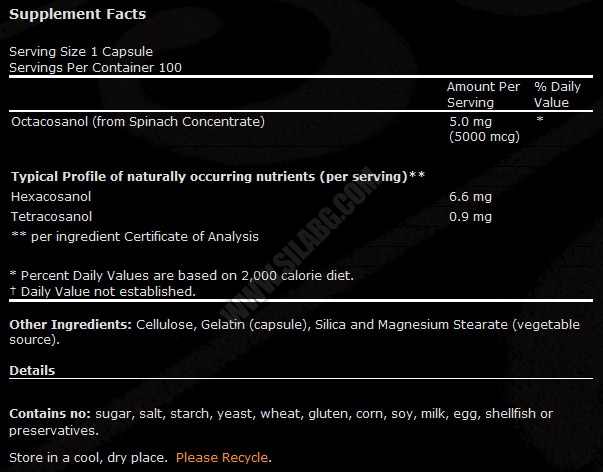 Octocosanol) представлява естествено срещащо се вещество, открито в захарната тръстика, маслото от пшеничен зародиш, спанака и други естествени източници. Нашият Октакозанол е извлечен от спанак и не съдържа пшеница.