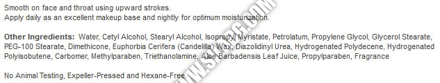 Благодарение на високата концентрация на алое вера кремът GNC Aloe Vera Moisturizing Cream има редица благоприятни лечебни ефекти. Алое вера е тропическо растение, чиито листа имат богато съдържание на витамини, минерали и аминокиселини. От хилядолетия са известни полезните целебни свойство на растението – извлеците от него действат противовъзпалително, антибиотично, успокояващо и подхранващо. Мехлемите с алое вера действат благоприятно при различни кожни проблеми – изгаряния, напукване, прекалена сухота, екземи и инфекции. Алое вера е известен лек срещу акне и забавя процесите на стареене в кожата.