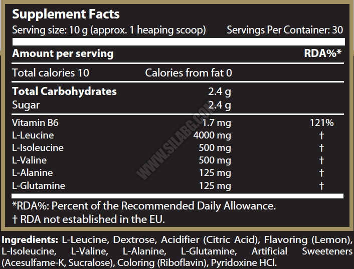 Начин на употреба: Прибавете 1 доза към поне 300 мл. вода. Оставете напитката да престои известно време за по-добро разтваряне на отделните съставки. Да се консумира около и/или по време на тренировка, или състезание. Възможна е употребата на допълнителни дози, при необходим прием на аминокиселини, например на всеки 3 часа, при недостатъчно снабдяване с левцин посредством храната ( за максимално увеличаване на протеин синтезата).