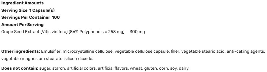 Съставки: екстракт от гроздово семе