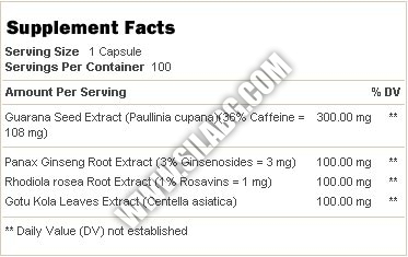 GNC Energy Formula съдържа екстракт от семена на гуарана, които са богат източник на кофеин, който тонизира тялото и стимулира ума. Семената на гуарана подобрява умствената дейност и елиминират чувството на умора. Този изключителен екстракт стимулира разграждането на мазнини, разширява кръвоносните съдове и отпуска гладките мускули на бронхите в белия дроб.