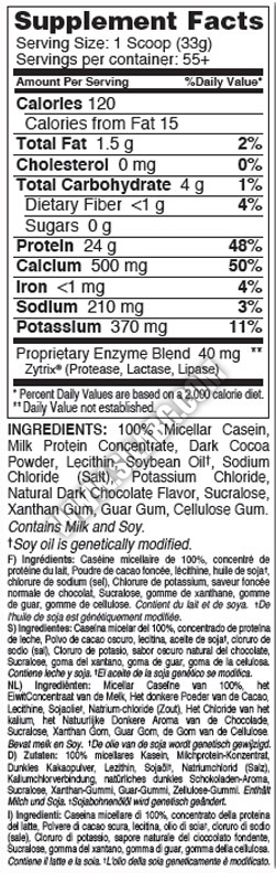 Dymatize Elite Casein съдържа 24 гр бавно усвоим казеинов протеин в една доза.