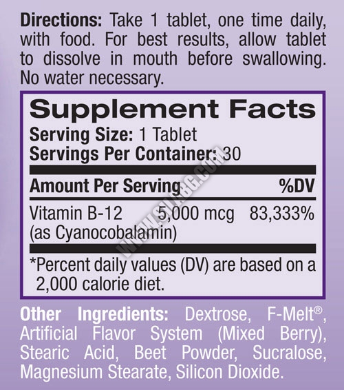 NATROL Vitamin B12 Fast Dissolve 5000 mcg. / 30 Tabs.