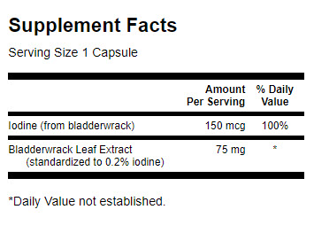 Съставки: Екстракт от листата на мехурчесто водорасло (стандартизиран да съдържа 0.2% йод)