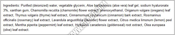 Съставки: хиалуронова киселина, екстракт от лимонова кора, екстракт от лайка, алое, кора от канела