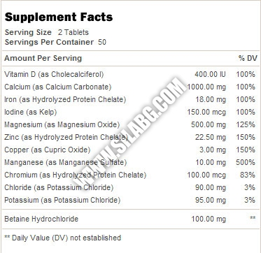 Формулата на GNC Multi Mega Minerals съдържа бетаин, който чувствително увеличава енергията, подобрява мускулната активност и стимулира изграждането на чиста мускулна маса. Освен това, бетаин насърчава метаболизма и понижава риска от сърдечно-съдови заболявания.