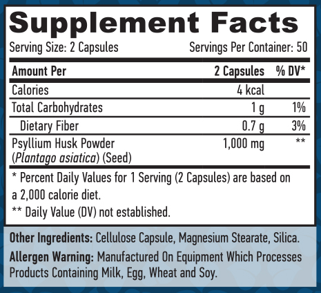 Псилиум хуск представлява хранителни фибри, съставени главно от хемицелулоза. Те не се смилат в тънките черва, а частично се разграждат в дебелото черво, играейки ролята на хранителен източник за полезната флора. Основно, Псилиум хуск, се проявява като гъба в чревния тракт, увеличавайки обема си, поглъщайки вода и отпадъчен материал. Това формира мека обемиста маса, която преминава през дебелото черво по-бързо (поддържайки потенциално токсичните отпадъци в движение) и се отстранява по-плавно и лесно. Според Управлението за контрол на качеството на хранителните продукти и лекарствени средства, Псилиум хуск може също така да помогне за намаляване риска от сърдечносъдова недостатъчност.