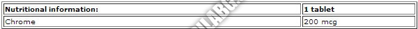 Състав:microcrystalline cellulose - bulking agent, calcium phosphate - firming agent, potato starch, magnesium stearate - anti-caking agent, chromium picolinate
