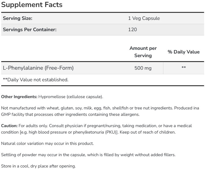 L-фенилаланин е незаменима аминокиселина, която лесно може да бъде превърната в аминокиселината тирозин. Тъй като тирозинът е необходим за протеин синтезата и производството на невротрансмитерите допамин и норепинефрин, фенилаланинът е хранителен компонент от изключително значение, който е необходимо да се набавя посредством храната или хранителна добавка.