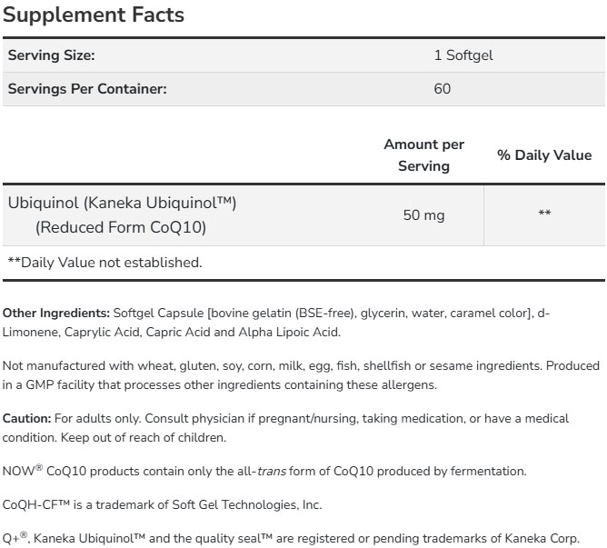 Свойства и характеристики на Ubiquinol CoQH-CF от Now:
