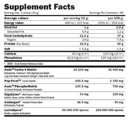 Благодарение на патентованата мулти-ензимна система – Aminogen®, DigeZyme® и пробиотици, AMIX Smooth -8 се усвоява много по-ефективно и по-пълноценно. Продуктът е подсладен с екстракт от стевия и сукралоза и не съдържа аспартам!