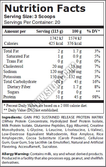 Това е едно от най-чистите гейнърчета на пазара. Хехе и има повече протеин от протеина на BSN. Няма грам захар и бърз въглехидрат. Препоръчваме го за покачване на чиста мускулна маса, та дори и за хора, които просто искат питателен шейк с много протеин.