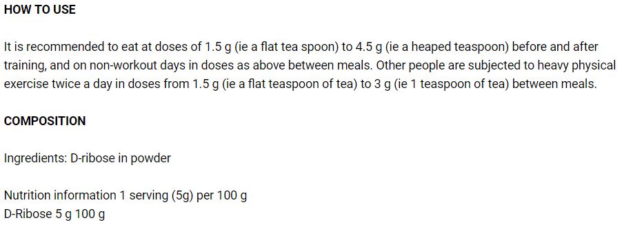 Състав: D-ribose powder