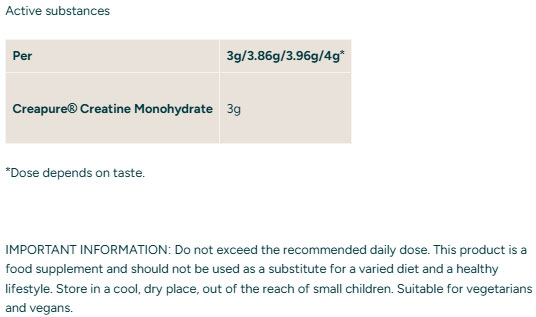 MYPROTEIN Creapure Creatine Monohydrate премахва чувството на скованост, намалява риска от поява на мускулни трески след натоварващи тренировки и оказва подкрепа върху храносмилателната система. Креатин монохидрат укрепва мускулната тъкан, има силно антикатаболно действие и предпазва от намаляване на обема на мускулната маса.
