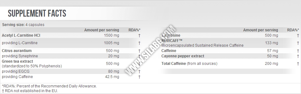 Този висококачествен фет бърнър включва ацетил L-карнитин (ALC), форма на аминокиселината карнитин с много положителни свойства. ALC съдейства за транспортиране на мазнините в митохондриите на клетките, където те се изразходват като източник на енергия. Този процес ефективно подомага изгарянето на излишните мазнини и подомага процеса на отслабване. Освен това, ацетил L-карнитин играе важна роля в поддържането на клетъчния метаболизъм и кръвообращението.