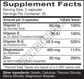 Съставки: магнезий, цинк, витамин В6, витамин С, витамин Е
