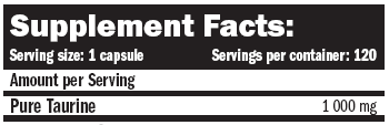 Съставки: таурин, желатинова капсула (направен от чист желатин, вода, оцветители: титанов диоксид), противослепващи вещества: магнезиев стеарат, силициев диоксид.
