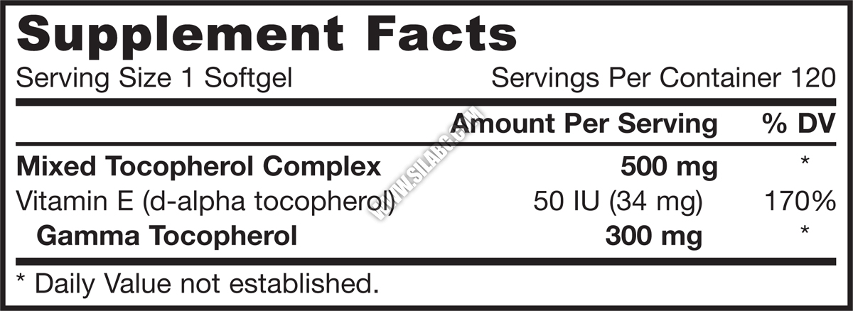 Съставки: Витамин Е (d-alpha tocopherol), гама токоферол