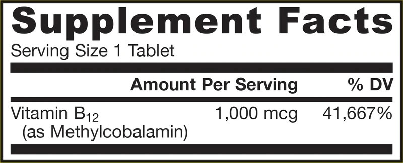 Метилкобаламинът е активна коензимна форма като всяко дъвчащо драже съдържа по 1000мкг от активната съставка. Тя се намира предимно в местни и млечни продукти, което често лишава вегетарианците и веганите от хранителните й стойности. С напредването на възрастта се наблюдава намаляване на съдържанието й при всички хора, което прави приема й като хранителна добавка препоръчителен за всеки.