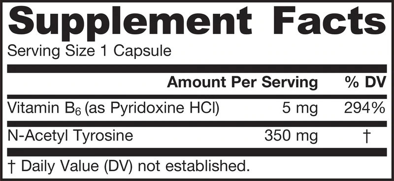 Jarrow Formulas съдържа по-биоусвоимата и устойчива форма на л-тирозина, която е н-ацетил тирозин, допълнена от вит. В6. Тя стимулира мозъчната функция като се превръща от невроните в допамин и норепинефрин, хормони, които намаляват при случаи на стрес или тежък физически труд. Л-тирозинът задвижва невротрансмитерите и се използва за намаляване на симптомите на стрес и депресия. Той също така се преобразува в тялото и в други билогически компоненти като СоQ10, тироидни хормони и меланин.