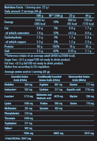 Протеина е много добър.Хидролизиран, лесно усвоим и разтворим.За тия пари е адска далавера.
