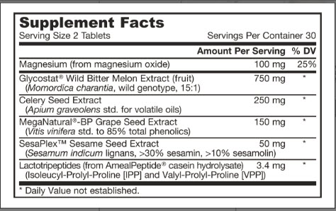 магнезий, екстракт от див горчив пъпеш, екстракт от целина, екстракт от грозде, екстракт от сусам, лактопептиди,