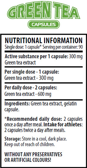 Съставки: Зелен чай сух екстракт, желатинова капсула.