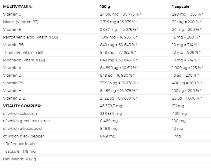 Тази комбинация от витамини и микроелементи се препоръчва при недостиг на витамини, при всяко по - голямо физическо натоварване и спортни занимания , редукционни диети, за превенция на злокачествени заболявания, както и в други ситуации, в които е наложително снабдяването на организма с тези витамини.
