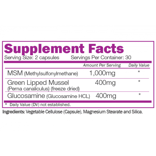 Съставки: МСМ комплекс, зеленоуста мида, глюкозамин