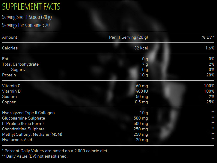 Mex подкрепя ставите с иновативна формула и съставки от ново поколение, като например Hydrolyzed Type II Collagen, Glucosamine, Chondritin, Hyaluronic Acid и MSM, които са изграждащите плочи в продукта.