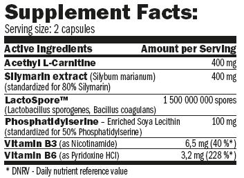 Съставки: Ацетил L-карнитин, екстракт силимарин, желатин, LactoSpore