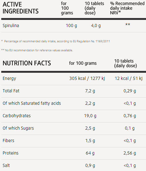 Продуктът е изграден на основата на екстракт от синьозелени водорасли спирулина.