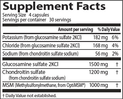 Съставки: Глуюкозамин сулфат, хондроитин сулфат, MSM, калий, желатин, микрокристална целулоза