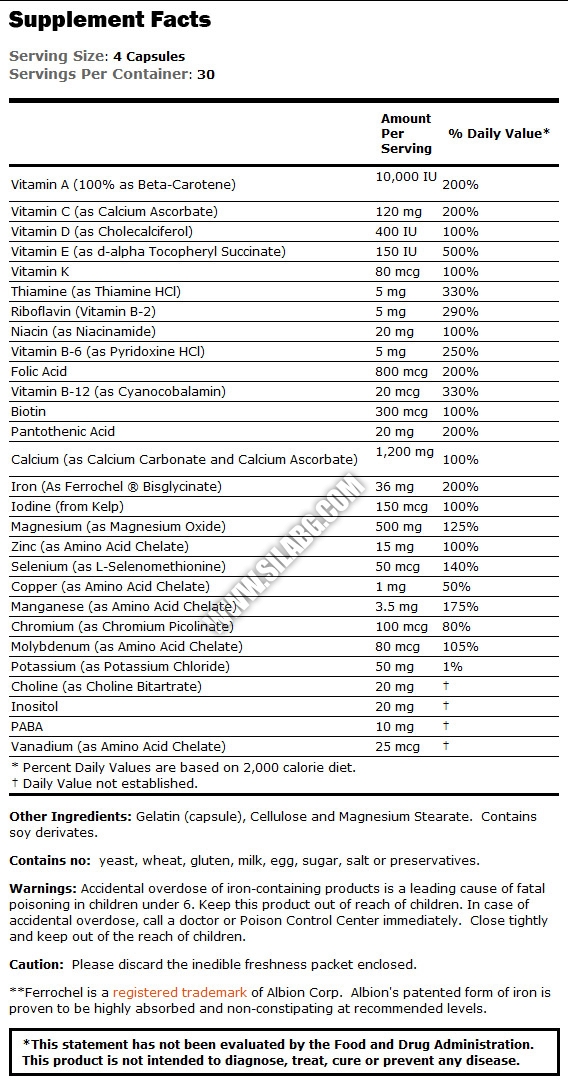 По време на бременност потребността от желязо нараства драстично. Затова всяка майка се нуждае от желязо в по-големи дози, особено през последният период от бременността. Този минерал е жизненонеобходим за производството на хемоглобин (червените кръвни телца) и за предотвратяване на често срещаната при бременните жени желязо дефицитна анемия. Желязото във формулата на Prenatal Vitamin е обработено допълнително, за да не предизвиква запек.