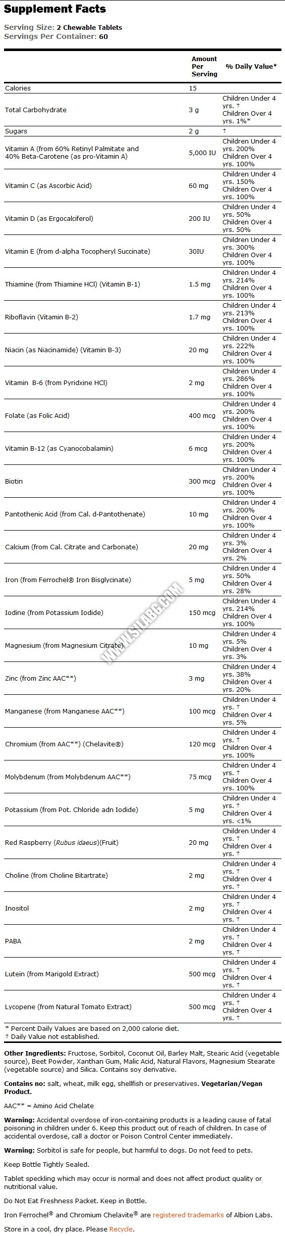 Препоръчителен дневен прием: За деца над 4 години - 2 таблетки сутрин с храната. За деца на възраст 1-4 години - 1 таблетка сутрин с храната.