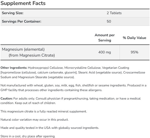 NOW Magnesium Citrate 200mg. / 100 Tabs.