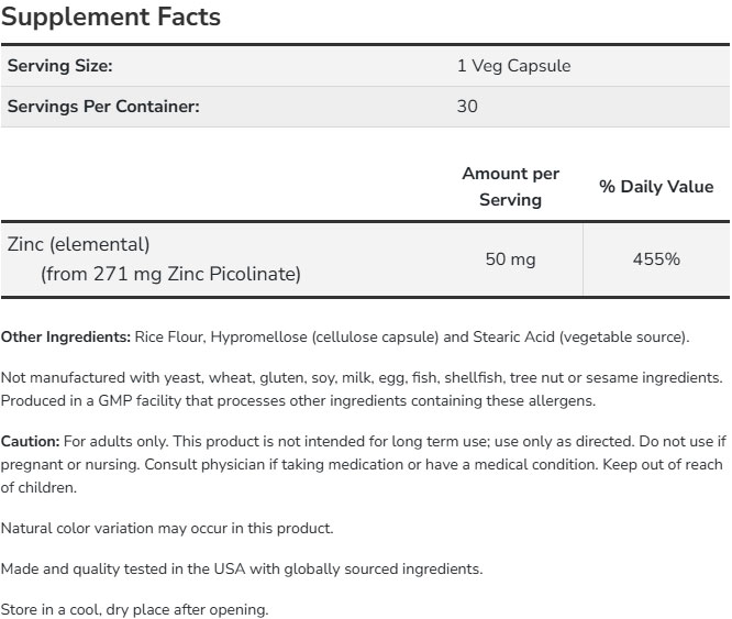 Zinc Picolinate 50 mg / 60 Vcaps