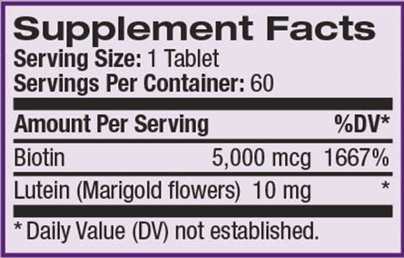 Natrol-Biotin Plus Lutein е изцяло натурален продукт с високо съдържание на лутеин и биотин.