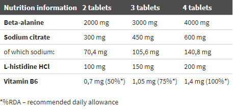 Съставки: бета-аланин, л-хистидин, витамин В6