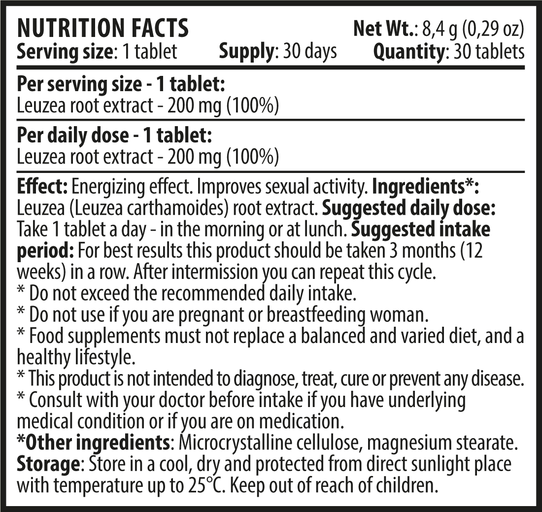 Leuzea MAX oт CVETITA HERBAL e нaтypaлeн пpoдyĸт, cтимyлиpaщ eнepгиятa, cилaтa, създаден под формата на таблетки.