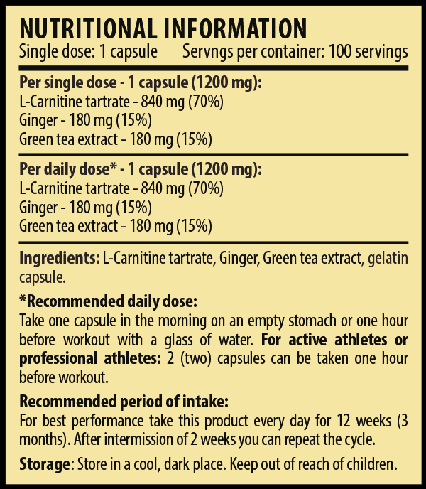 Съставки: екстракт от зелен чай, л-карнитин тартрат, джинджифил