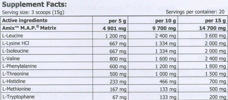 AMIX M.A.P. Powder съдържа всички есенциални аминокиселини, които са необходими на организма да се възстанови качествено след напрегната тренировка във фитнес залата!