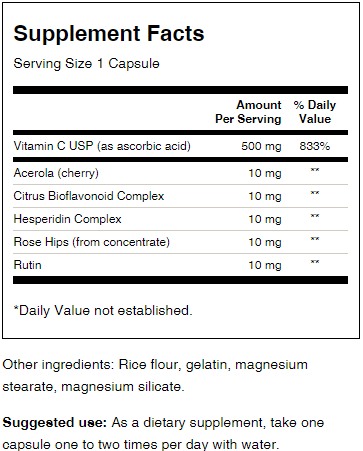 Този продукт от Swanson освен, че съдържа Витамин С, е богата и на ацерола, рутин, хесперидин и естествени цитрусови биофлавоноиди за по-добро действие.
