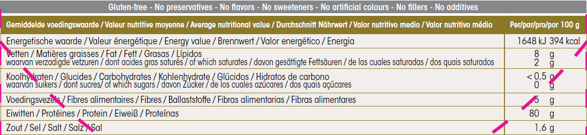 Предоставя пълен спектър от аминокиселини, извлечени от концентрирана фракция на оризови протеини (със съдържание на аминокиселини подобно на "майчиното мляко") и протеин на прах от грах и конопени семена.