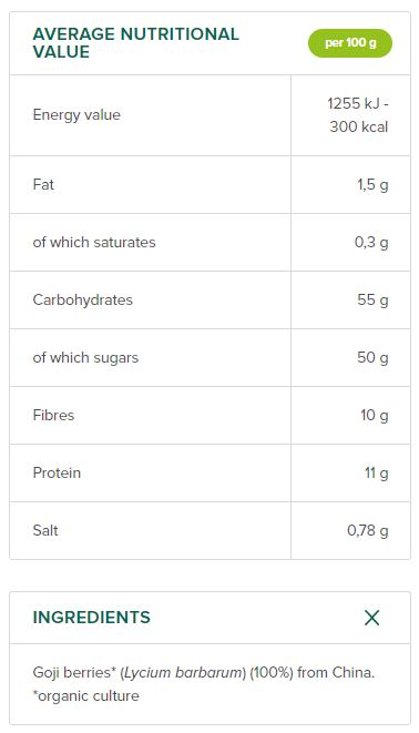 Съставки: Годжи Бери от Китай - 100% органична култура