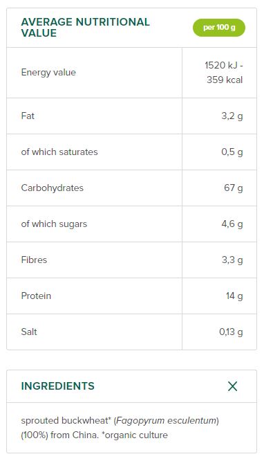Съставки: сурова елда от Китай - 100% органична култура